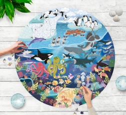 Ta stilska okrogla sestavljanka je popolna izbira za vsakogar, ki ljubi morski svet in išče izziv z elegantnim rezultatom. Zaradi 1000 skrbno izrezanih koščkov in okroglega formata prinaša netradicionalno izkušnjo sestavljanja in impresivno dekoracijo po zaključku.