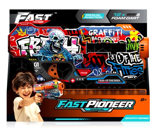 Ročna pištola Fast Pioneer prinaša zanesljivo in varno akcijsko zabavo za otroke in začetnike. Zaradi napenjalnega mehanizma ne potrebuje baterij, zato je vedno pripravljena na akcijo. Penasti naboji so prijazni do pohištva in varni pri igri s prijatelji.