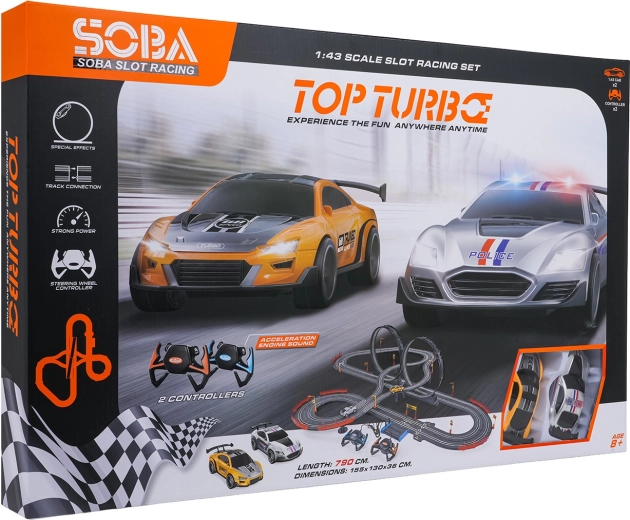 Sestavite si lastno dirkalno progo z dvojnimi zankami in dvignjenimi odseki, kjer odločata hitrost in natančnost. Avtomobilska steza TOP TURBO XXL je zasnovana za otroke od 8 let dalje in odrasle navdušence ter ponuja gladko uravnavanje hitrosti, luči na avtomobilčkih in zvoke motorja za še bolj realističen doživetje.