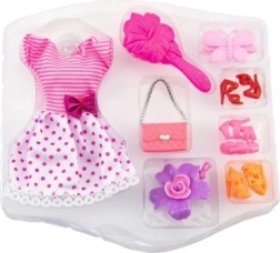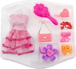 Ta vsestranski set za punčke prinaša popoln outfit za vsako priložnost. Otroci lahko kombinirajo obleko, čevlje in dodatke za lase ter ustvarjajo neskončno mnogo stilov. Mešanica izvedb zagotavlja presenečenje in veselje v vsakem paketu.