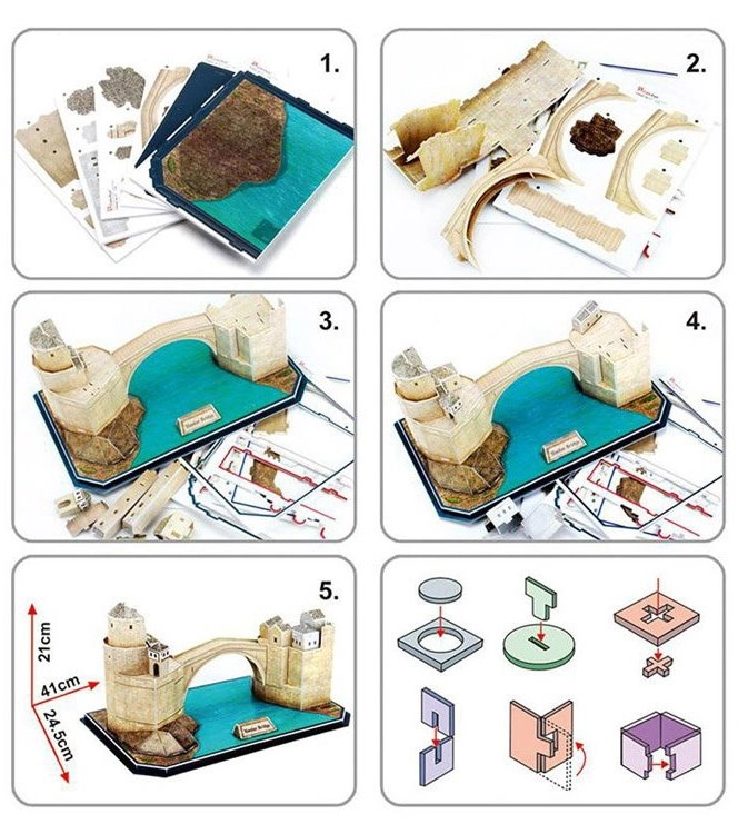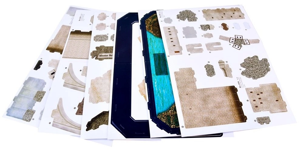 Odkrijte čar Bosne in Hercegovine s 3D sestavljanko ikoničnega ločnega mostu v Mostarju. Model je izdelan iz 3 mm pene, prevlečene z laminiranim potiskanim papirjem, kar zagotavlja vzdržljivost, realističen videz in natančno prileganje. Deli so predrezani in se preprosto izlamljajo – brez potrebe po lepilu in škarjah.