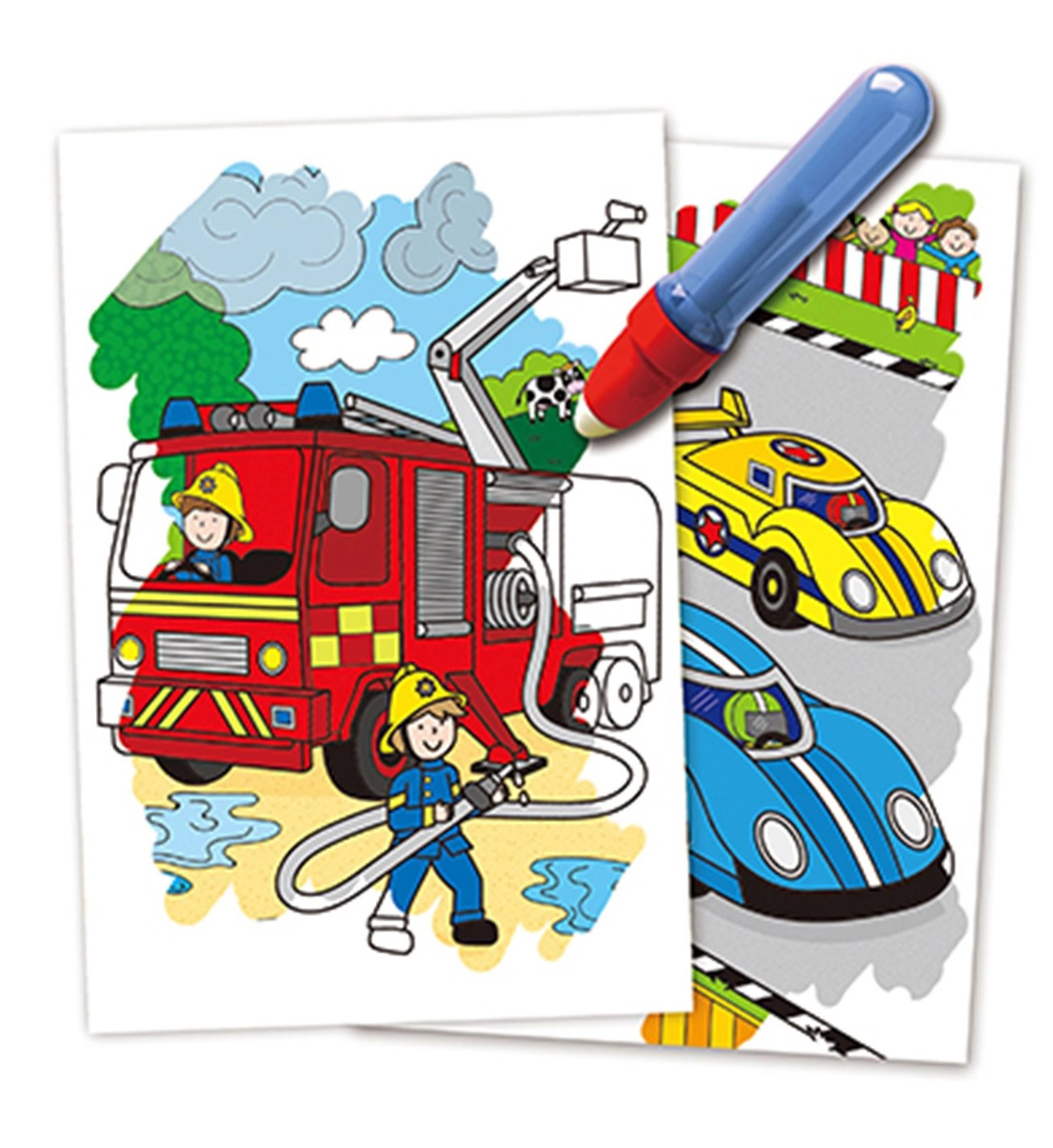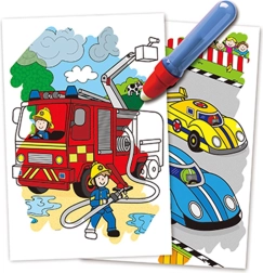 Odkrijte zabavno čarobno slikanje z vodo z motivom avtomobilov, ki ne pušča nereda. Potrebujete le vodo in slike oživijo v živahnih barvah. Ko se posušijo, se barve vrnejo v prvotno stanje, zato lahko slikate znova in znova. Idealna ustvarjalna zabava za otroke od 3 let z ponovno napolnjivim čarobnim svinčnikom in 6 slikami v spiralni vezavi.