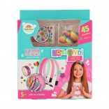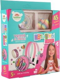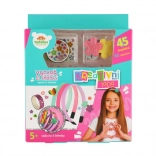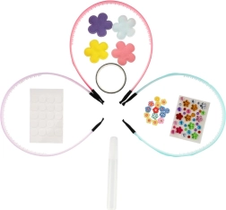 Ustvarite izvirne naglavne obroče povsem po svojem okusu. Komplet vsebuje tri osnovne obroče in bogato paleto dekoracij, s katerimi nastanejo edinstvene kombinacije – od barvitih in igrivih do nežnih in diskretnih. Preprost postopek zlahka osvojijo tudi mlajši otroci, ki pri ustvarjanju urijo potrpežljivost in fino motoriko.