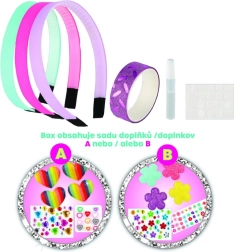 Razvijte otroško domišljijo in ustvarite edinstven modni dodatek. Ta ustvarjalni komplet otrokom omogoča, da po svojem okusu oblikujejo in okrasijo lastne naglavne obroče. Vsebuje širok izbor dodatkov in okraskov za igriv, barvit ali eleganten videz, spodbuja kreativnost, fino motoriko in ponuja preprosto ter zabavno ustvarjanje, primerno za otroke od 5. leta dalje.