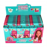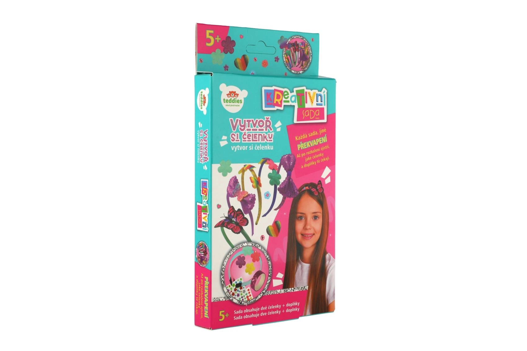 Ta kreativni komplet otrokom omogoča, da si po svoje oblikujejo in okrasijo naglavne obroče glede na razpoloženje. Vsak paket je majhno presenečenje – mešanica barv, oblik in dodatkov vedno prinese nove ideje in izvirne kombinacije. Zahvaljujoč samolepilnim pikicam in priloženemu lepilu je postopek preprost in čist, zato se ustvarjanja z veseljem lotijo tudi mlajši otroci.