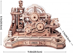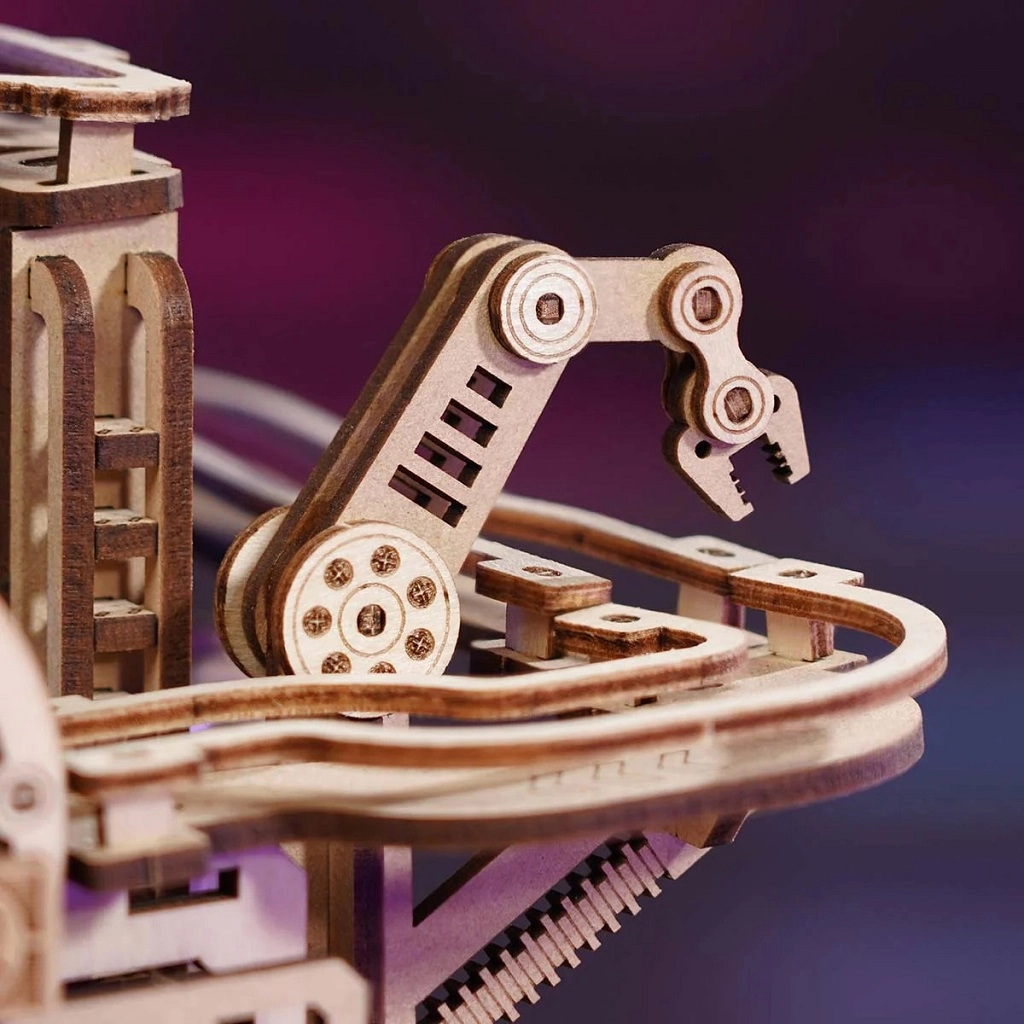 Model združuje les, kovino in plastiko za zanesljivo mehansko funkcijo in dinamičen videz. Komplet je idealen za skupne trenutke z družino in prijatelji, razvija fino motoriko, logično razmišljanje in potrpežljivost.