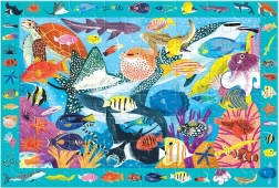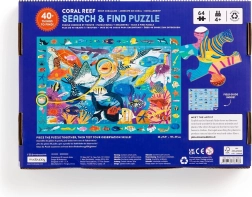 Potopite se v barvit ocean! Čudovito ilustrirana sestavljanka s temo koralnega grebena ilustratorke Hannah Abbo prinaša ne le zabavo, temveč tudi učenje. Otroci lahko po sestavitvi slike ob robu poiščejo več kot 40 predmetov ter s tem razvijajo opazovalne sposobnosti, potrpežljivost in fino motoriko.