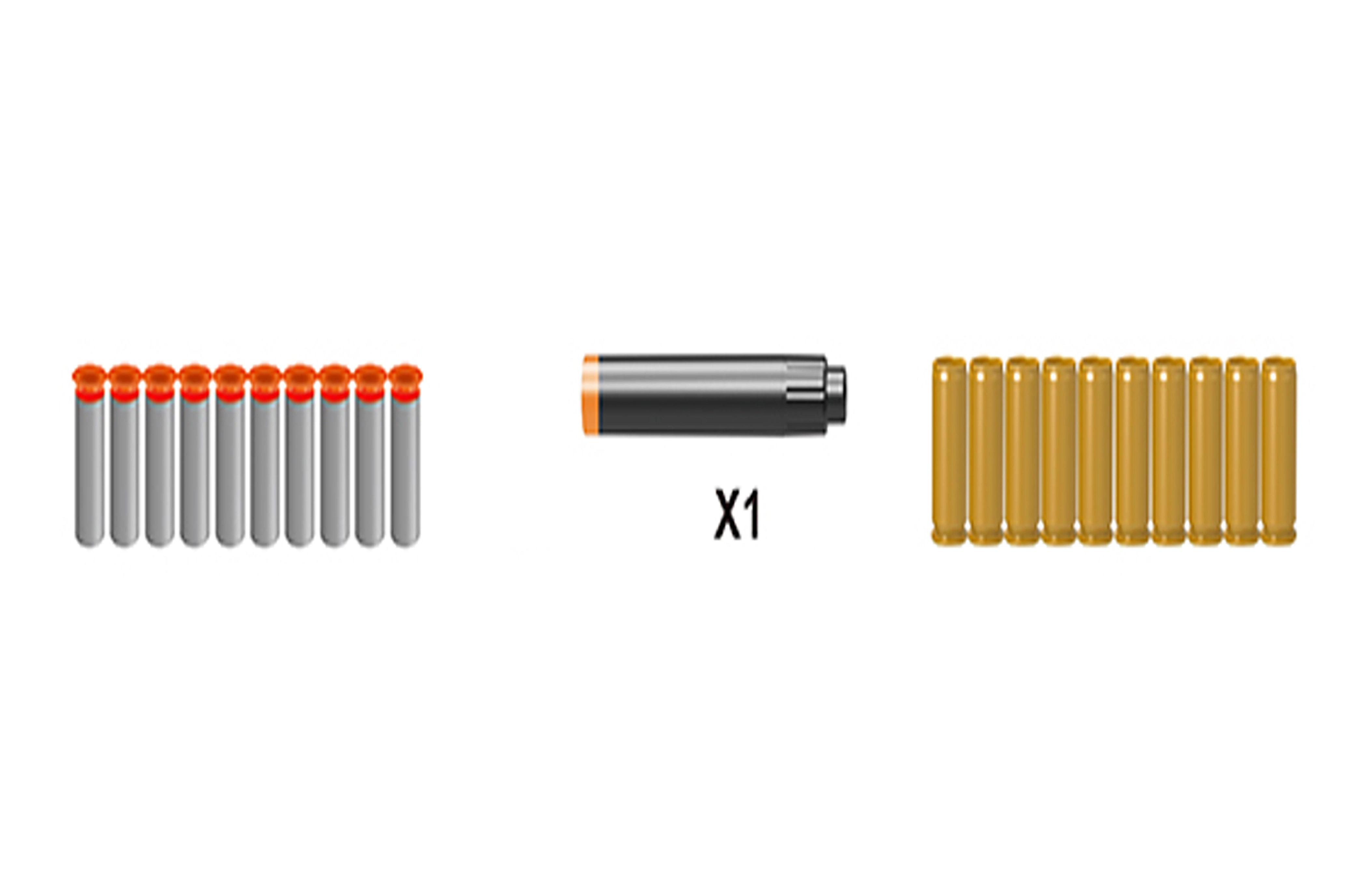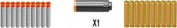 V paketu najdete vse za takojšno zabavo: stojalo za stabilno merjenje, dušilec in nastavljiva merka. Penasti naboji so nežni in primerni za notranjo in zunanjo uporabo. Patrone dodajo igri pristnost, otroci pa lahko na varen način preizkusijo polnjenje in streljanje.