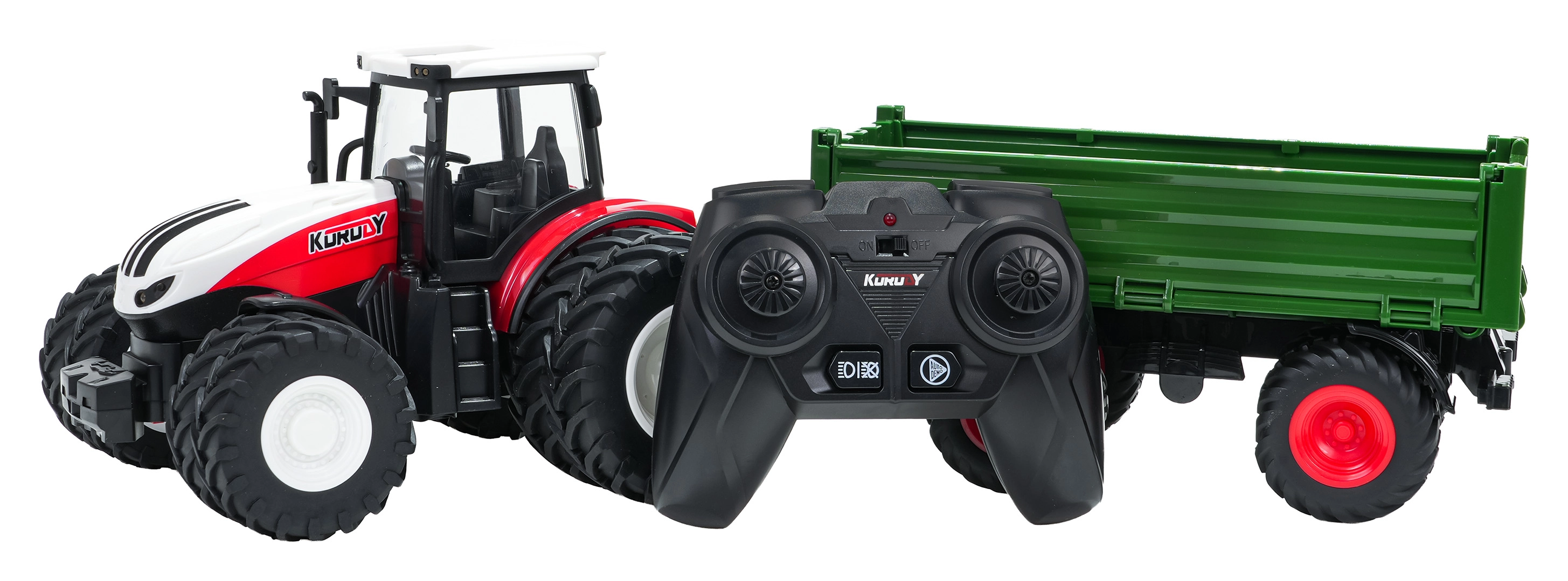 Stabilna frekvenca 2,4 GHz zagotavlja odzivno krmiljenje brez motenj. Traktor vozi naprej, nazaj, levo in desno ter zahvaljujoč velikim gumijastim kolesom premaga različne podlage.