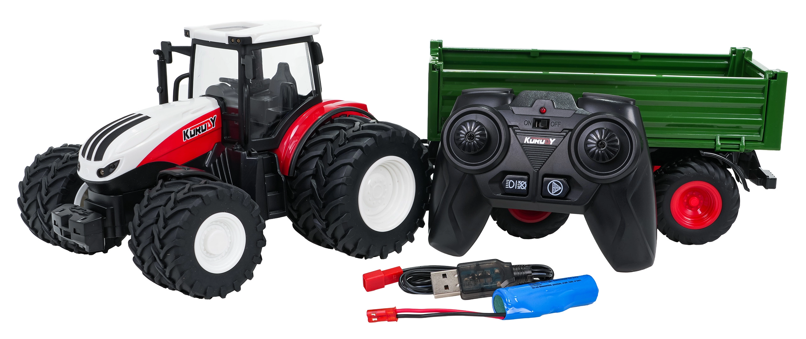Ta zabaven in vzdržljiv RC traktor je idealen za male kmete. Zahvaljujoč frekvenci 2,4 GHz je upravljanje gladko tudi na večji razdalji, velika gumijasta kolesa pa zagotavljajo zanesljiv oprijem na različnih podlagah. Osvetlitev kabine in sprednjih luči prispeva k realističnosti in vidljivosti med igro.