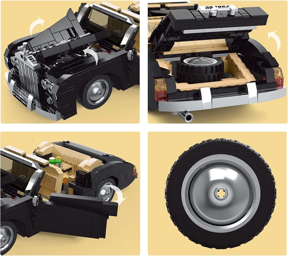 Ta izbrušen model klasičnega kabrioleta izstopa s kromiranimi detajli, avtentično notranjostjo in natančno oblikovano karoserijo. Komplet ponuja odlično izkušnjo pri sestavljanju in razstavljanju – vozilo je mogoče voziti po kolesih, odpirati vrata, pokrov motorja in prtljažnik ter občudovati premišljeno zasnovo kokpita.