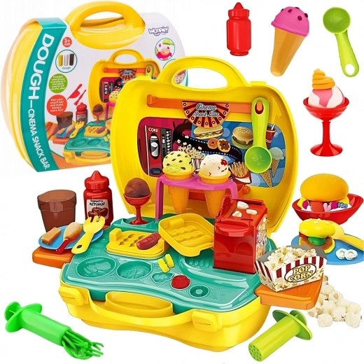 S tem prenosnim kompletom si otroci v hipu pripravijo lasten snack bar – dovolj je odpreti kovček in začeti ustvarjati. Zahvaljujoč praktičnemu shranjevanju vseh delov je komplet idealen za dom, k starim staršem ali na pot. Barvit in prožen plastelin se zlahka oblikuje in je prijeten na dotik.