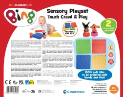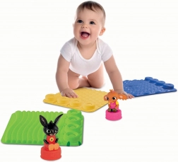 Set otrokom od 18 mesecev naprej prinaša varno okolje za čutno raziskovanje. Raznolike teksture (valovi, pikice, oblike in sledi) masirajo stopala in dlani ter podpirajo ravnotežje, koncentracijo in zaznavanje barv. Z dvema figuricama iz sveta BING si otroci ustvarjajo lastne zgodbe ter razvijajo domišljijo in kognitivne veščine.