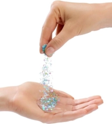 Ustvari popoln bleščeč učinek s prozornim sluzom in štirimi vrstami bleščic. Mešaj, kombiniraj in prilagodi videz punčke za vsak dan.