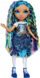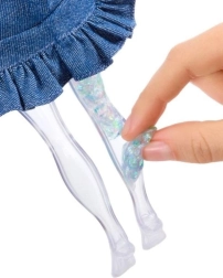 Punčka RAINBOW HIGH Skyler prinaša povsem nov način igre – povezavo mode, sluzi in bleščic. Ustvari svoj bleščeč miks, dodaj ga v prozorne noge punčke in opazuj preobrazbo. Polnjenje je hitro in preprosto: odstrani zadnji del nog, vstavi sluz, pripni nazaj in igra se lahko začne. Najboljše pa je, da lahko celoten postopek ponavljaš znova in znova.