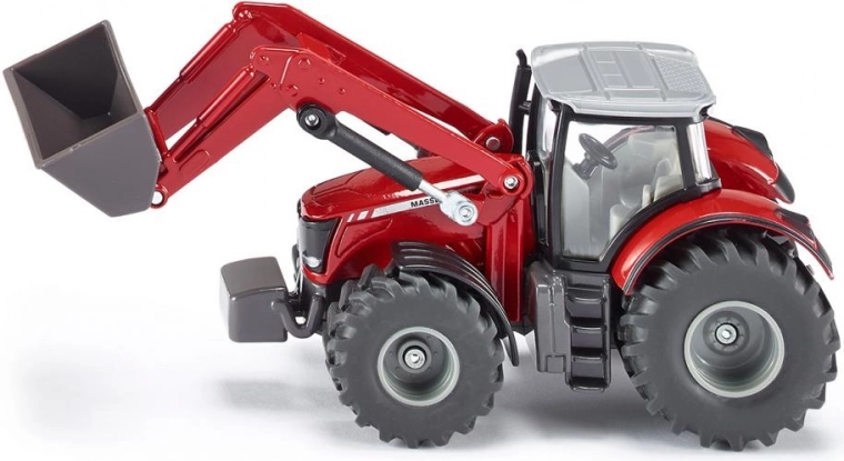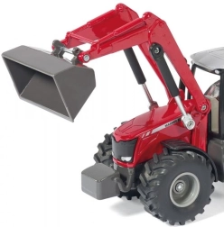 Natančen model traktorja MASSEY FERGUSON 8690 s čelnim nakladalnikom v merilu 1:50 združuje kovino in plastiko za visoko vzdržljivost in podrobno izdelavo. Premično roko in nakladalno žlico odlikuje realistično delovanje, odlično dopolnjeno z drugimi modeli in prikolicami SIKU.