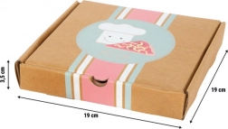 Ta lesen komplet pice ponuja otrokom vse, kar potrebujejo za pripravo svoje pice: štiri segmente, povezane z ježkom, zaradi česar jih je mogoče zlahka “odrezati” z lesenim rezalnikom. Del paketa so tudi filcane sestavine (čebula, gobe, paprika, paradižnik, klobasa in sir) ter obojestranska paradižnikova omaka s potiskom zelišč ali brez.
