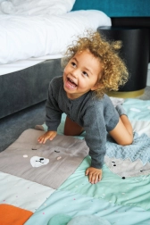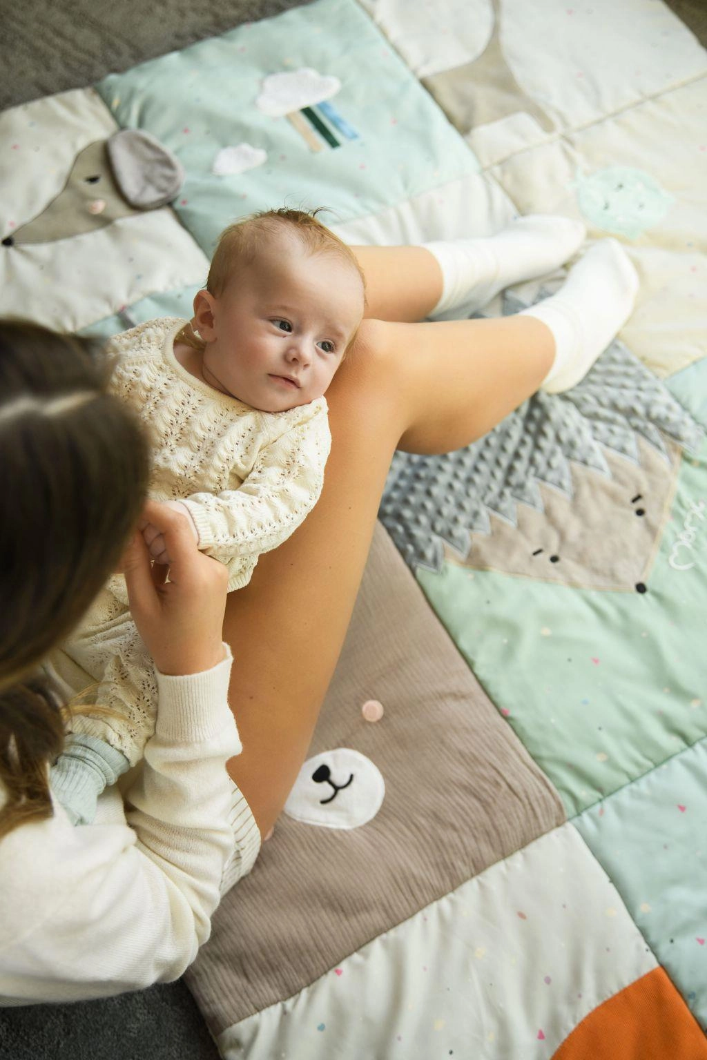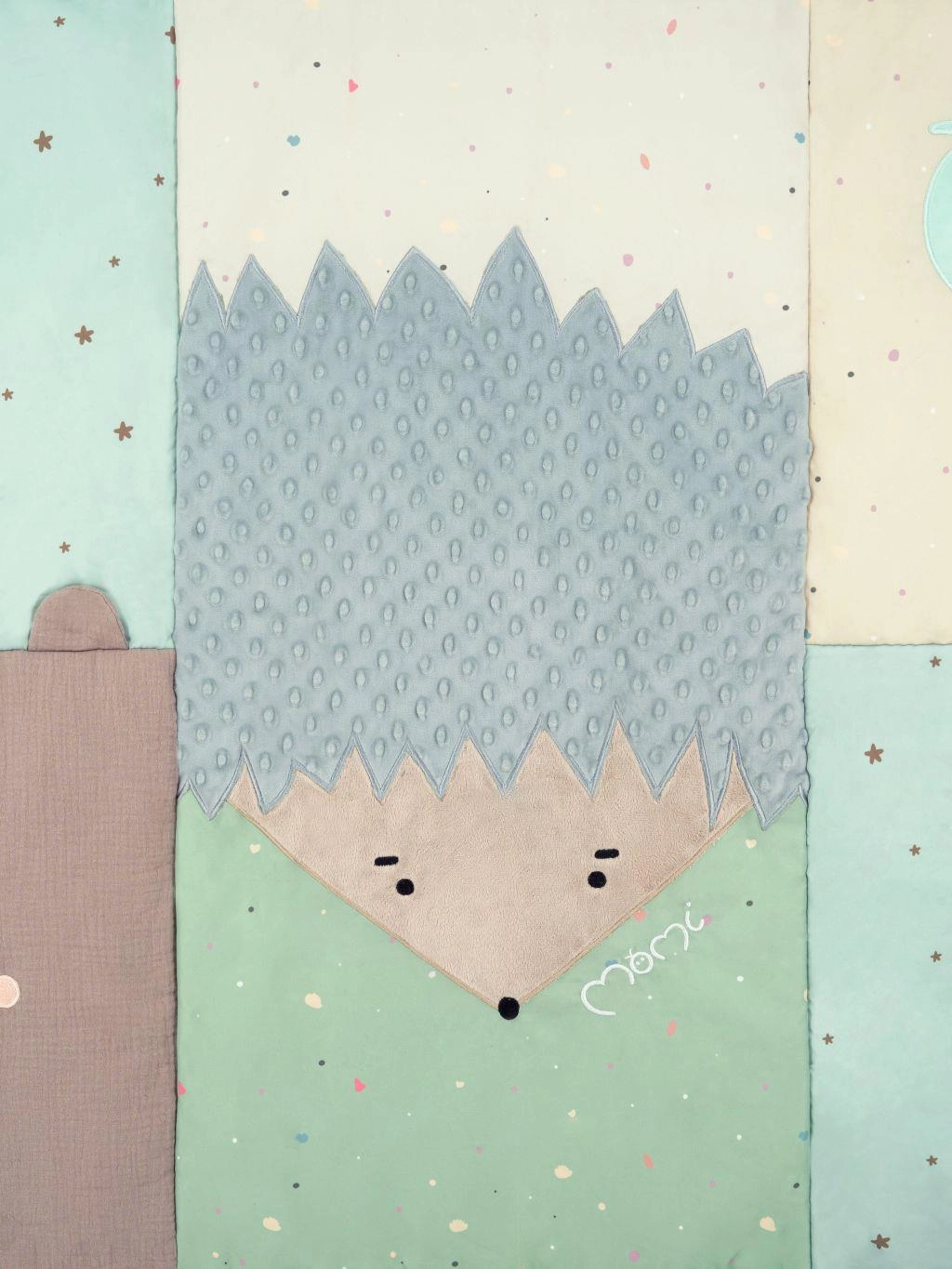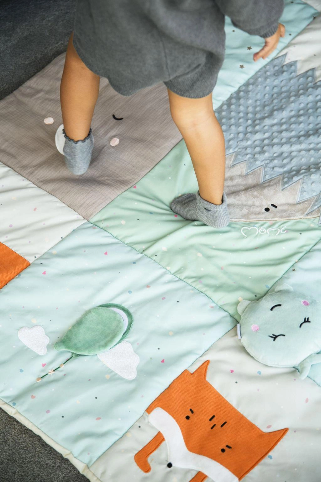 Igralna podloga MoMi VOLPI je zasnovana tako, da raste z vašim otrokom – od prvih trenutkov na trebuščku do samostojne igre. Patchwork dizajn z različnimi teksturami (minky, pliš, mušelín, buklé) nudi bogato senzorično stimulacijo in prijetno udobje. Zahvaljujoč veliki dimenziji 120 × 160 cm ustvarite varno in mehko cono za igro, počitek in raziskovanje.