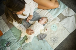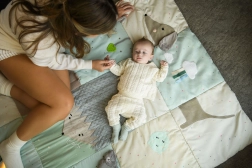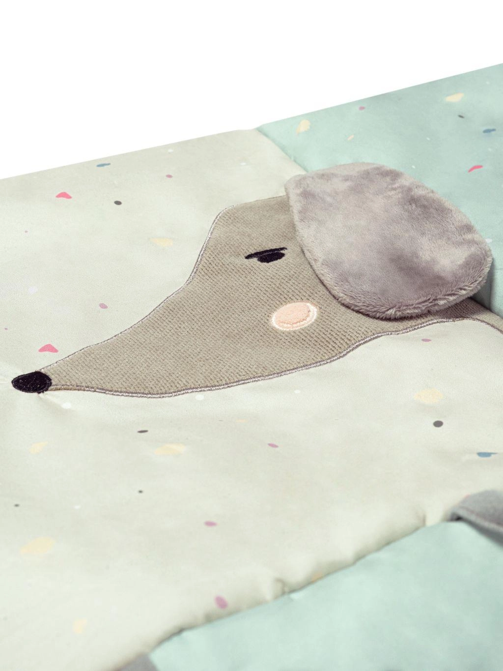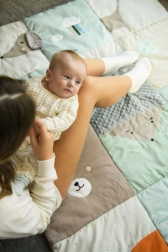 Prostorna, prešita podloga ustvarja varno in udobno mesto za trebušni čas, plazenje in sprostitev – doma in na prostem.