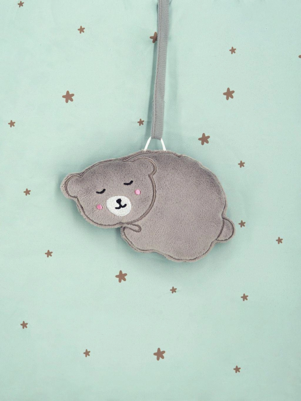 - Bogata senzorična oprema – ogledalce v balončku, piskajoči nos medvedka, šumeče uho kužka, grizalo in mehki pliškoti.