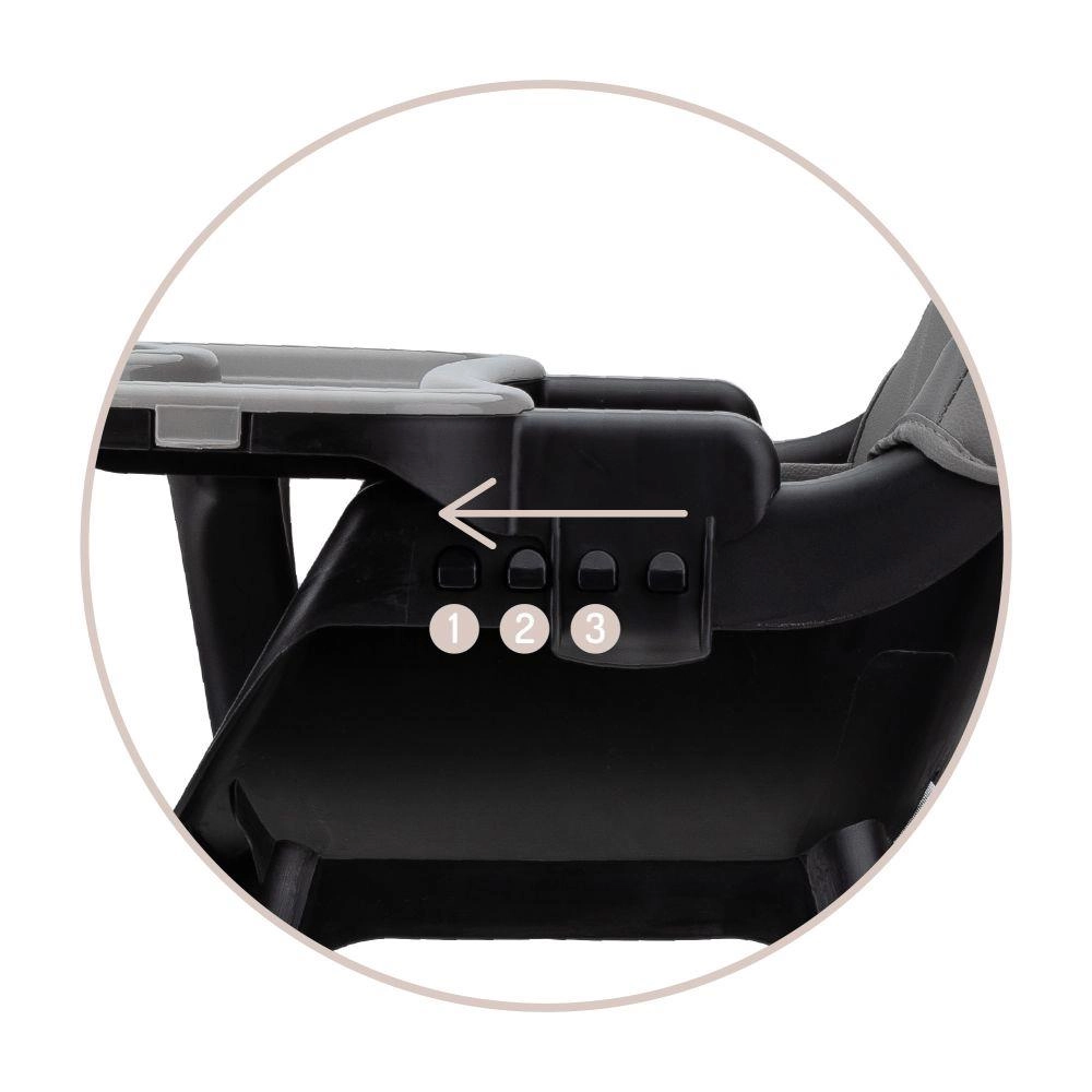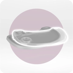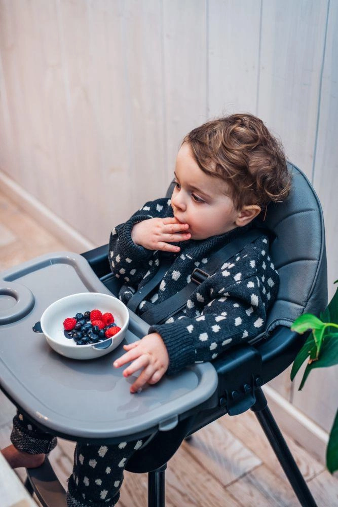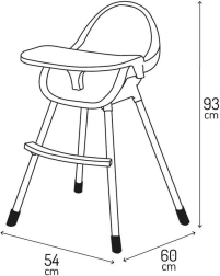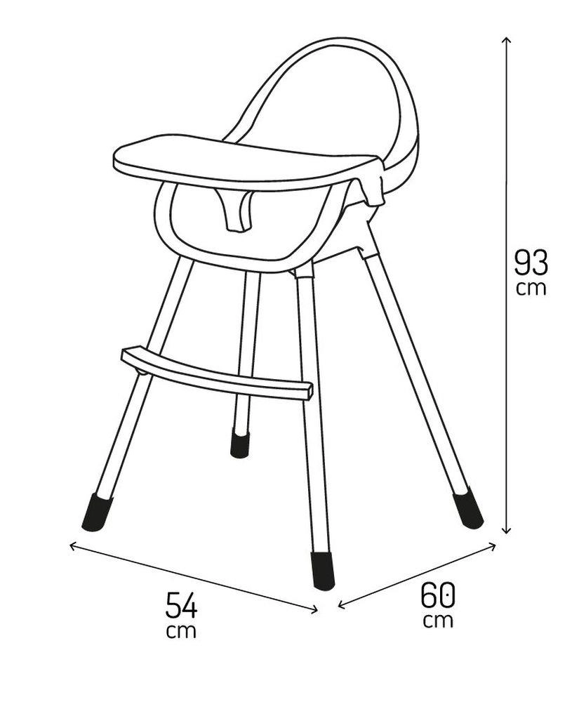 Premišljeni dvojni pladenj z držalom za pijače je nastavljiv in njegov zgornji del lahko postavite v pomivalni stroj. Stabilna konstrukcija z oporo za noge in varnostnimi pasovi zagotavlja udobje in varnost. Minimalističen dizajn in umirjene barve se lepo podajo v moderno kuhinjo ali jedilnico.