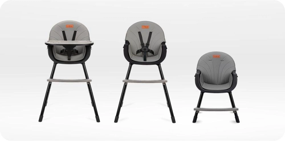 Uporabite ga kot visok stolček s pladnjem, stolček k mizi ali nizek stolček za igro. En stol, tri praktične rešitve za vsak dom.