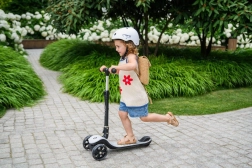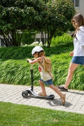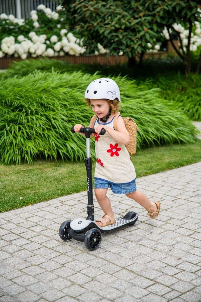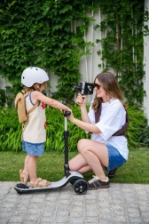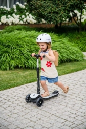 MoMi SAN je idealen prvi skiro za male voznike. Tri kolesa zagotavljajo odlično stabilnost, nizka in široka stopalna plošča pa omogoča varen vstop in izstop. Svetleča LED kolesa navdušijo otroke in hkrati izboljšajo vidnost med vožnjo.