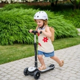 Lahek in stabilen trikolesni skiro za otroke od 3 let z LED svetlečimi kolesi, zložljivim okvirjem in višinsko nastavljivim krmilom v 3 stopnjah. Ponuja nedrsečo stopalno površino, mehke ročaje in nožno zavoro za varno vožnjo. Odličen za učenje ravnotežja in samozavesti pri vožnji.