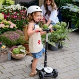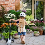 MoMi SAN otrokom naravno pomaga trenirati ravnotežje zahvaljujoč stabilnemu trikolesnemu podvozju in intuitivnemu nagibnemu krmiljenju. Dve veliki sprednji kolesi in eno zadnje zagotavljajo gladko in zanesljivo vožnjo, medtem ko protizdrsna deska in mehki ročaji dodajajo samozavest pri vsakem koraku.