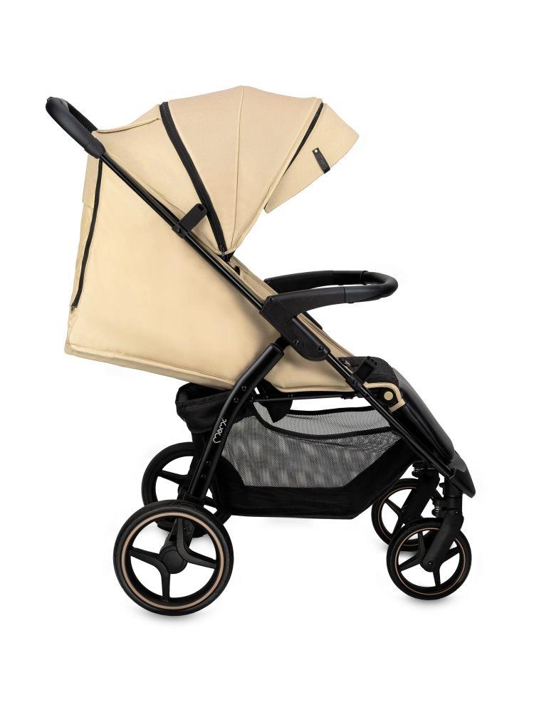 Velika kolesa iz EVA pene z vzmetenjem vseh štirih koles zlahka premagujejo mestne neravnine. Nastavljivo naslonjalo in opora za noge omogočata udoben spanec ali budno vožnjo. Priložen je popoln komplet dodatne opreme za vsako vreme – od mreže proti komarjem, preko zaščitne prevleke za noge do dežne prevleke.