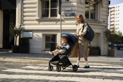 Voziček MoMi ANDREA hitro in varno zložite z eno roko. V zloženem stanju samostojno stoji, zato ga zlahka shranite doma ali v prtljažniku avtomobila.