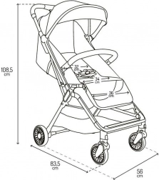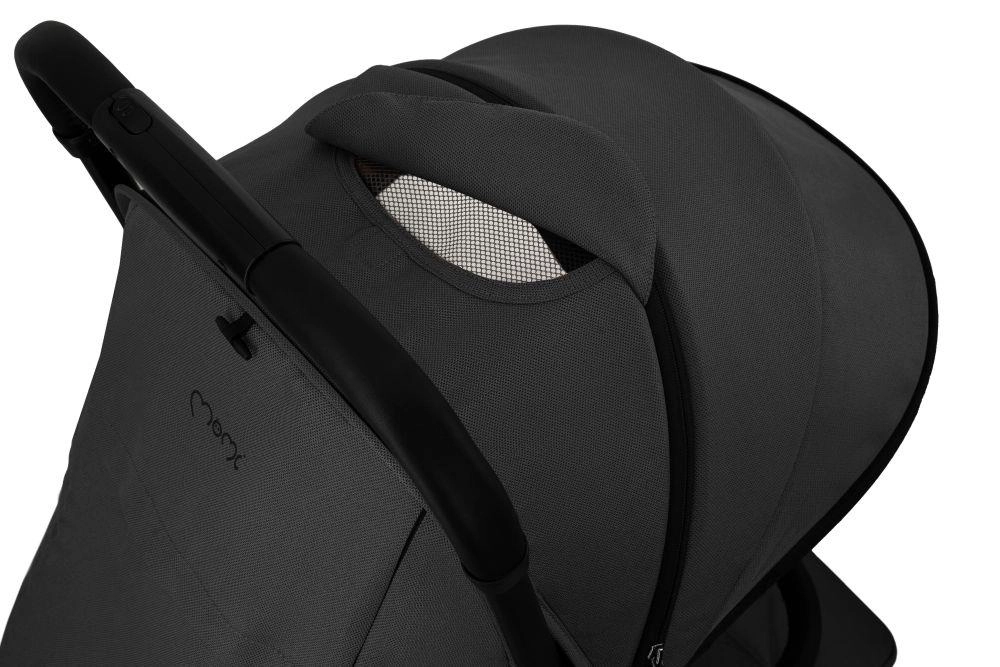 Prostorna strešica z okencem za stik z otrokom in drugim prezračevalnim oknom iz mrežice prinaša udobje v vročih dneh. Sedež z nastavljivim naslonom do ležečega položaja in 4-stopenjsko oporo za noge prilagodite trenutnim potrebam. Za varnost skrbijo 5-točkovni pasovi in odstranljiv varovalni lok.