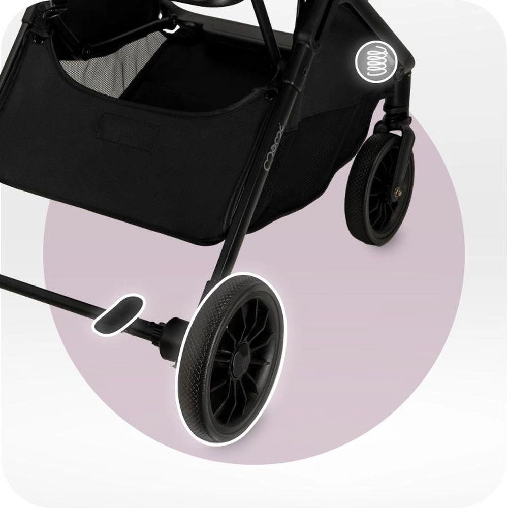 MoMi ANDREA je idealen voziček za mesto in izlete. Zahvaljujoč samodejnemu sistemu zlaganja ga zložite z enim gumbom v kompaktno velikost, v kateri samostojno stoji. Blaženje in brezvzdrževalna EVA kolesa (6,5" spredaj, 7" zadaj) zagotavljajo gladko vožnjo in enostavno manevriranje.