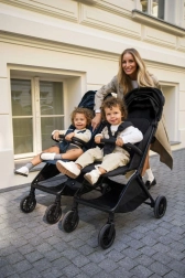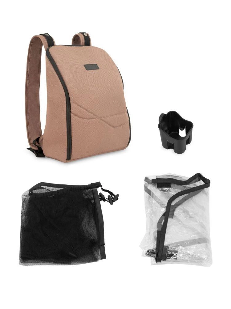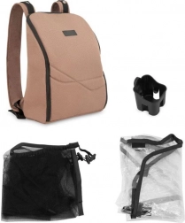 V kompletu prejmete nahrbtnik za voziček, nosilec za pijačo, mrežo proti komarjem in dežno prevleko. Izbirni komplet adapterjev omogoča združitev dveh vozičkov v praktično rešitev za sorojence ali dvojčke.