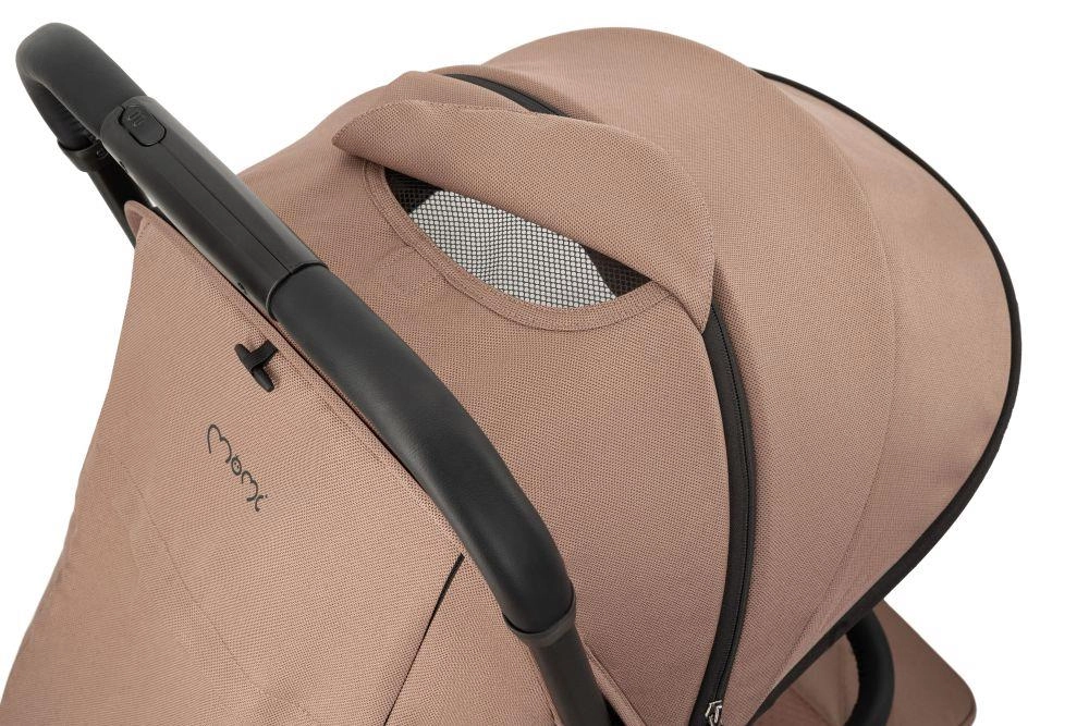 MoMi Andrea je zanesljiv mestni spremljevalec, zasnovan za udobje starša in otroka. Zahvaljujoč samodejnemu zlaganju z enim pritiskom ga upravljate tudi z otrokom v naročju. Velika strešica z okencem in dodatno prezračevalno okno z mrežico v ležečem položaju zagotavljata nadzor in prijeten pretok zraka v vročih dneh.