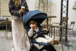 MoMi Andrea je praktičen mestni voziček, ki se sam zloži po pritisku enega gumba in v zloženem stanju stoji vertikalno. Zaradi nizke teže, okretnih koles in kompaktnih mer je idealen za potovanja, javni prevoz in manjše prtljažnike.