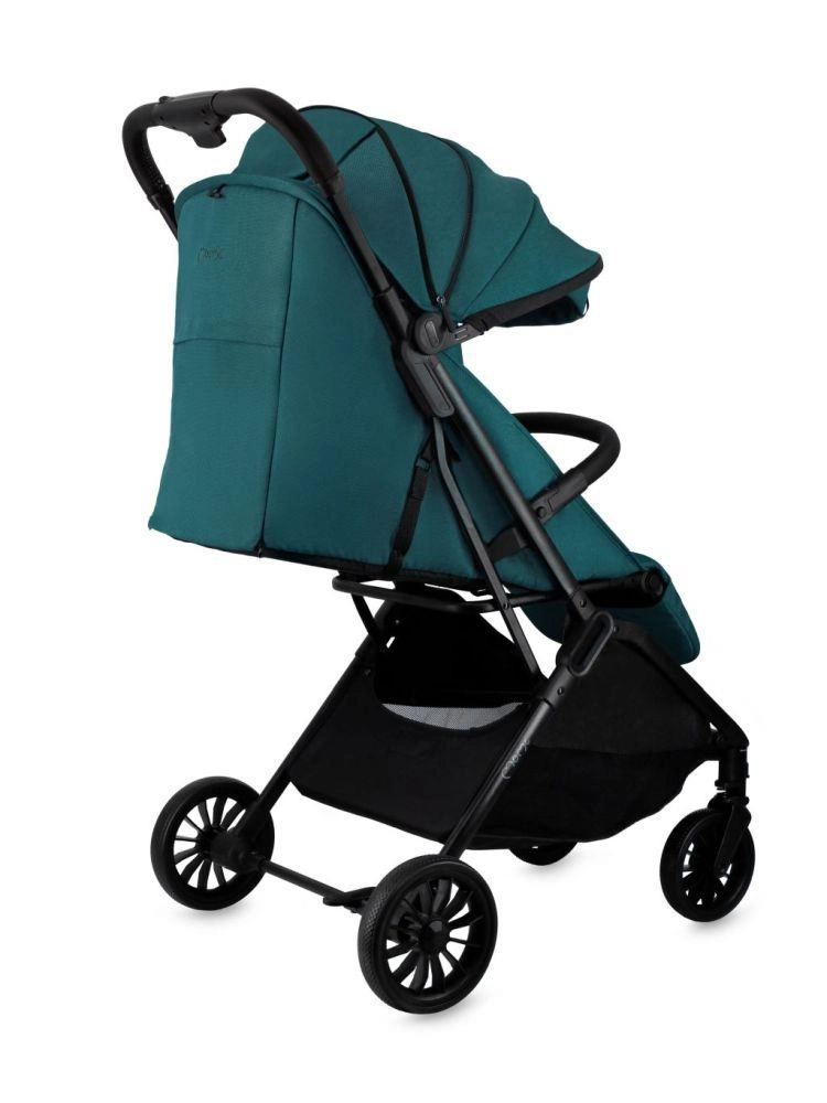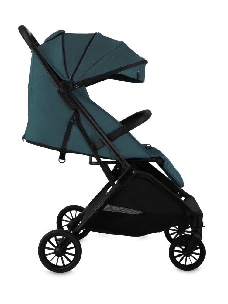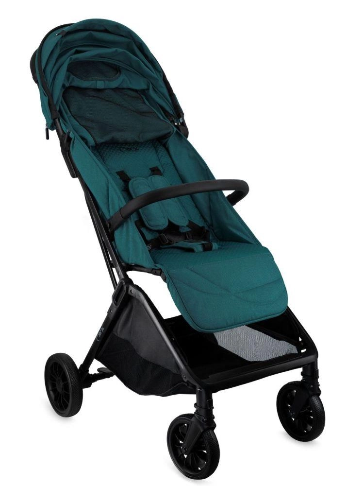 Otroku zagotavlja udobje tekoče nastavljanje naslonjala vse do položaja za počitek ter 4-stopenjska opora za noge. Razširljiva strehica s kontrolnimi okenci in zadnji prezračevalni panel iz mreže poskrbita za pretok zraka v toplih dneh. Brezzračna EVA kolesa premera 6,5" spredaj in 7" zadaj gladko premagujejo tlak in neravnine.