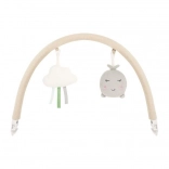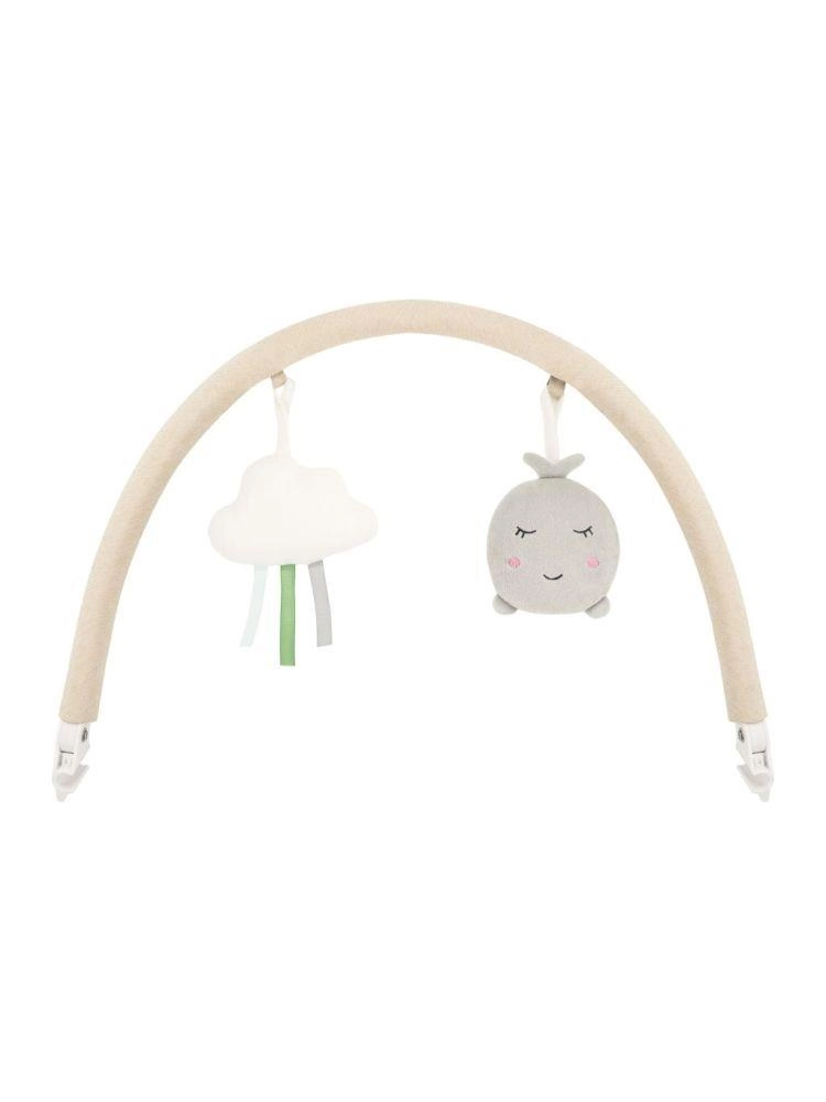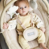 5-točkovni pasovi, mehek vzglavnik in protizdrsne podloge poskrbijo za varnost in udobje dojenčka. Igralni lok z dvema igračkama spodbuja čutni razvoj.