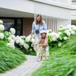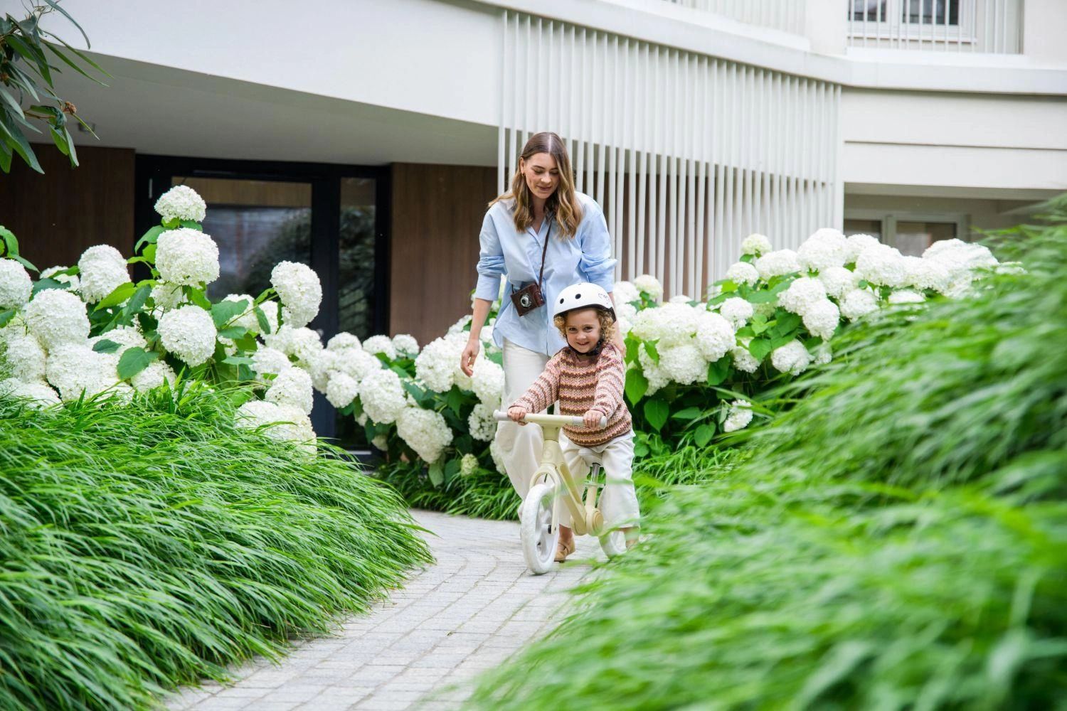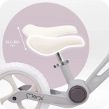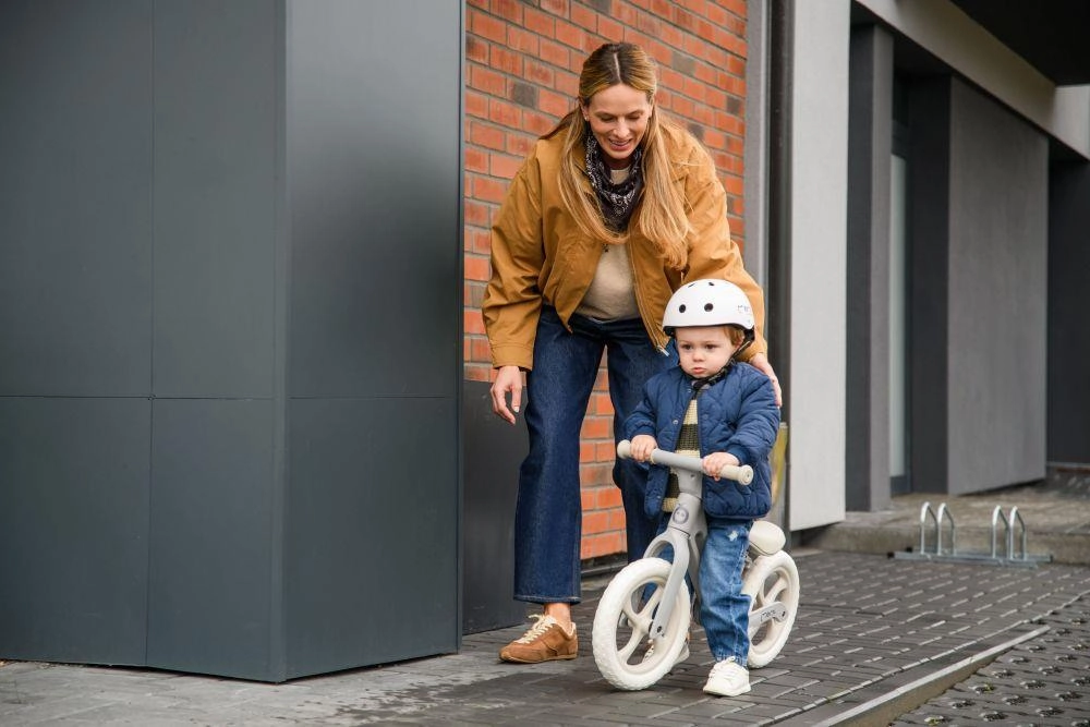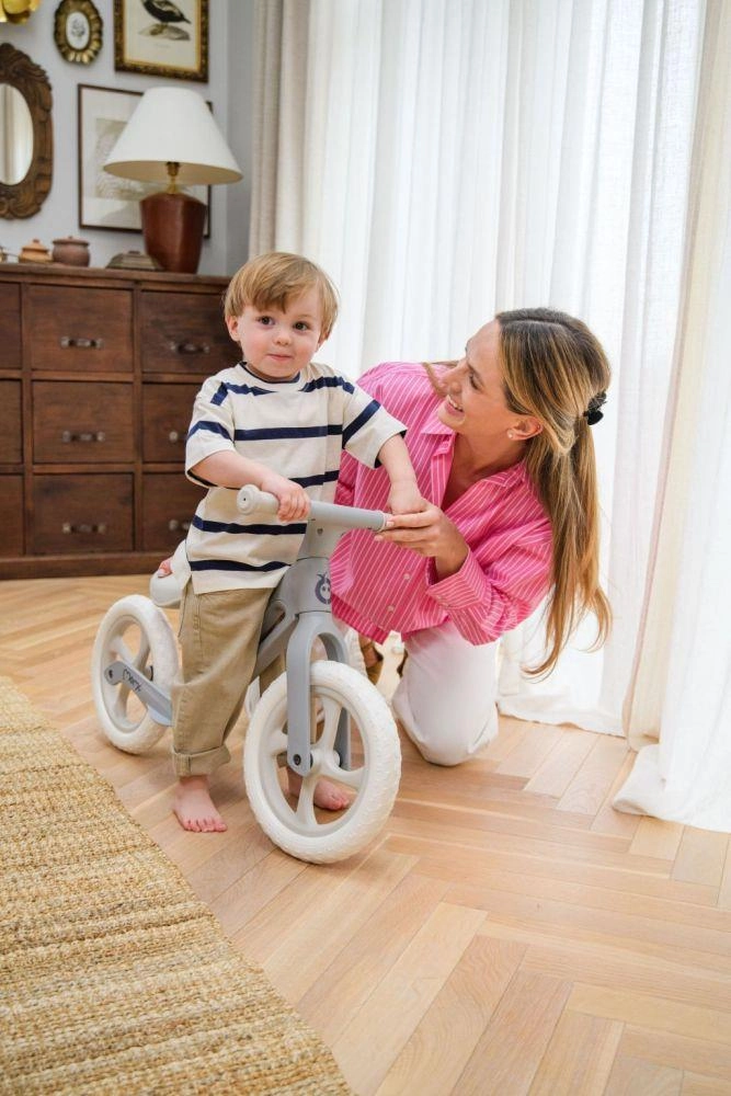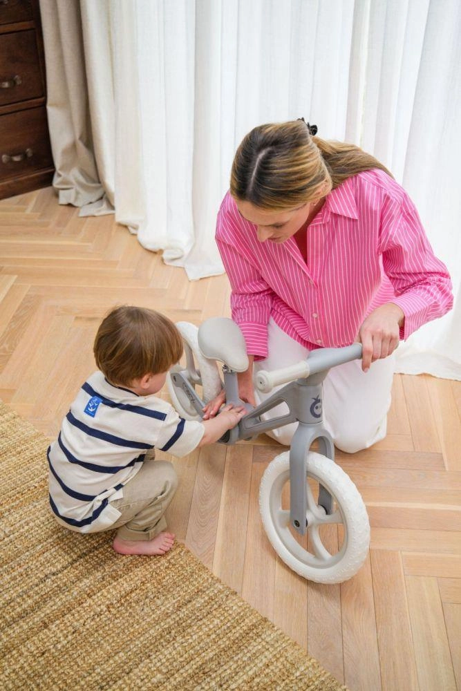 Zahvaljujoč širokemu razponu nastavitve sedeža poganjalec raste z otrokom. Brezvzdrževalna EVA kolesa 12" se ne preluknjajo in zagotavljajo tiho, stabilno vožnjo po pločniku in doma. Za večjo varnost poskrbijo nedrseči ročaji ter odsotnost zaklepa krmila za naravno upravljanje brez nepričakovanih zagozditev.