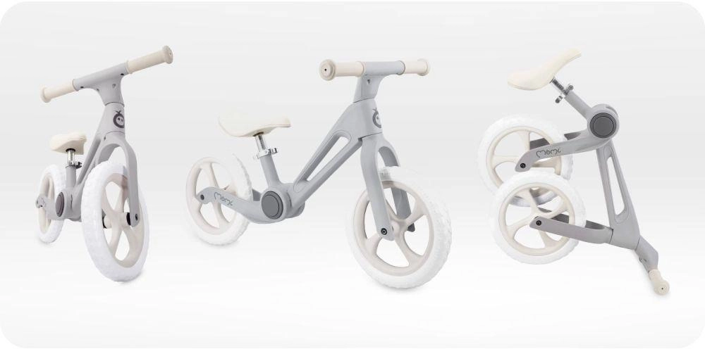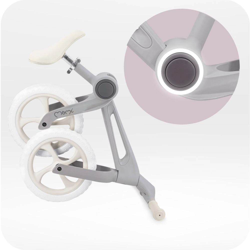 MoMi Noru dvigne prve korake na kolesu na novo raven. Edinstven zložljiv okvir na gumb olajša prenašanje in shranjevanje – od avtomobila do doma brez skrbi. Lahka zasnova iz vzdržljivega najlona tehta le 3 kg, zato jo lahko starši zlahka prenašajo z eno roko.