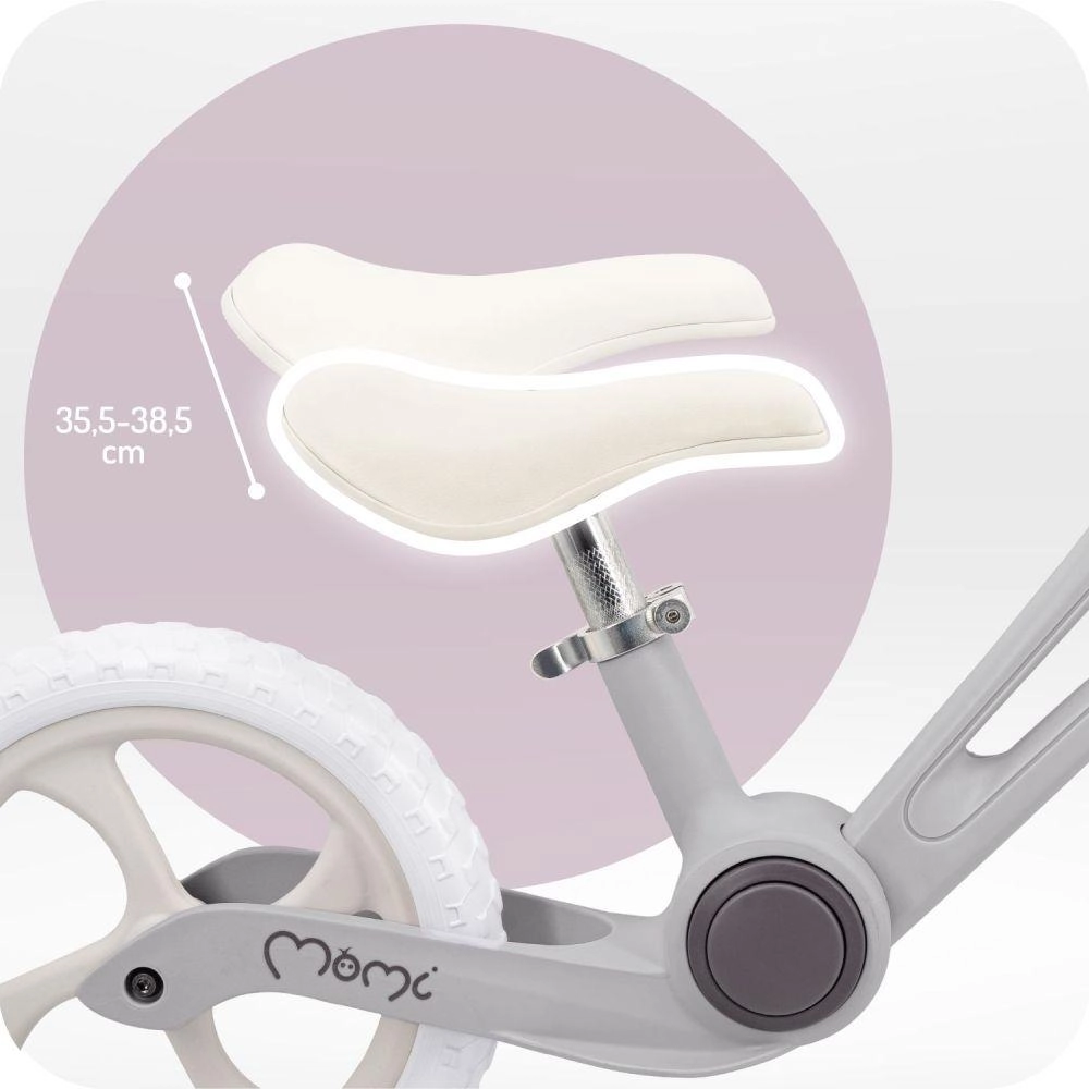 Lahko in praktično poganjalno kolo MoMi Noru z enostavnim zlaganjem na gumb je idealno za male voznike od 2 let naprej. Ponuja nizko težo, nastavljivo višino sedeža brez orodja in brezzračna EVA kolesa 12" za udobno in varno vožnjo. Zahvaljujoč najlonskemu okvirju in nedrsečim ročajem se otroci z zaupanjem učijo ravnotežja doma in na prostem.