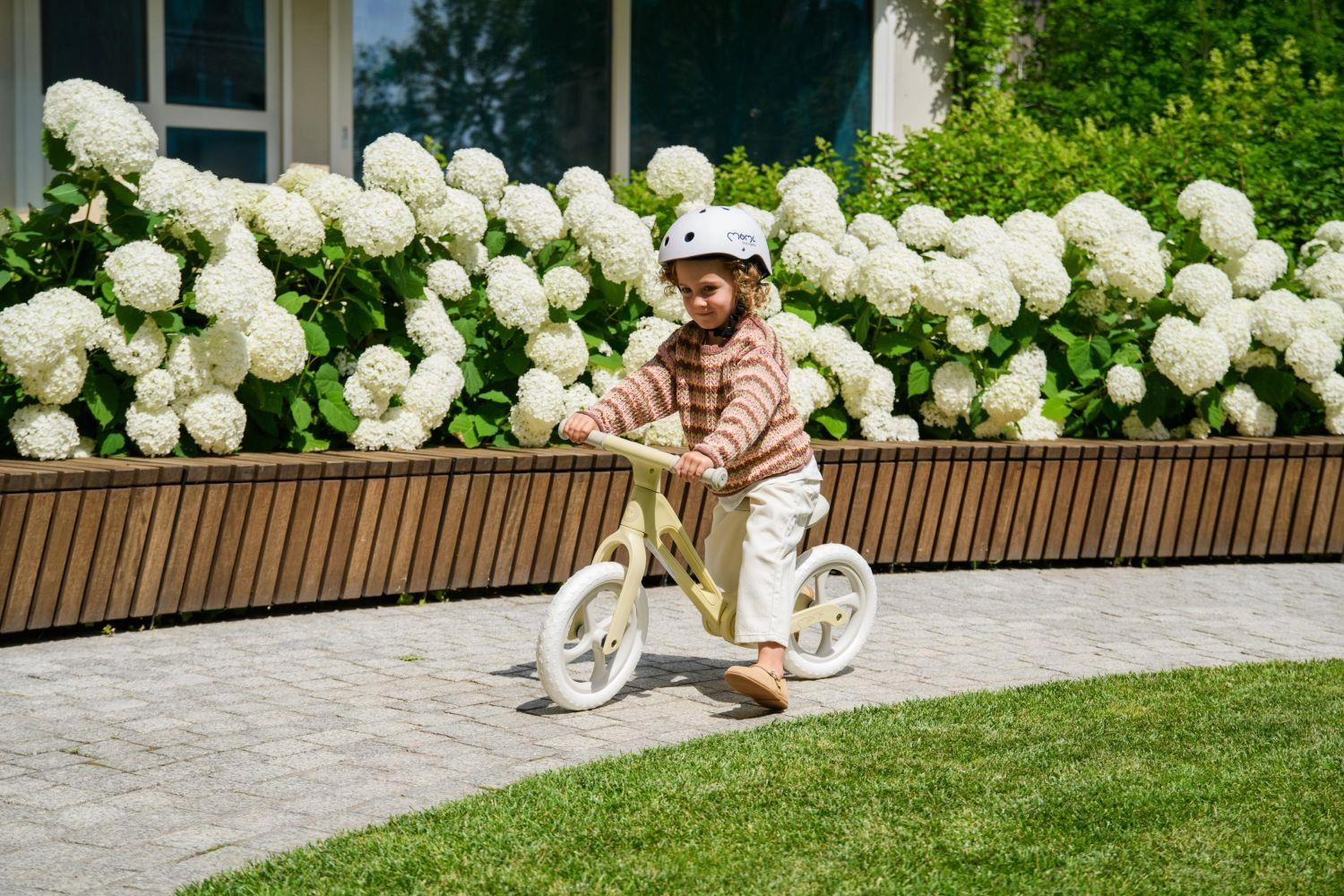 - Podpira ravnotežje in koordinacijo kot priprava na kolo s pedali