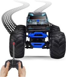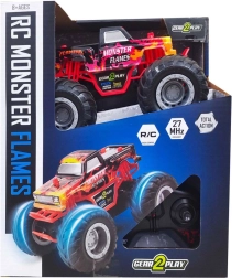 RC avto Monster Hammer Flames je vzdržljiv monster truck, zasnovan za notranjo in zunanjo uporabo. Zaradi visokega podvozja in velikih pnevmatik se dobro znajde na preprogi, ploščicah in neutrjenih površinah. Lahka, a trdna karoserija z motivi plamenov modelu daje privlačen videz.