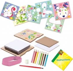 V paketu najdete vse, kar potrebujete za takojšnje ustvarjanje – od stiskalnika do predtiskanih kartic, 8 barvnih barvic ter lepila in čopiča. Ustvarjalno delo razvija fino motoriko, domišljijo in občutek za barve, hkrati pa je odličen način za preživljanje časa z otroki in odkrivanje lepote narave.