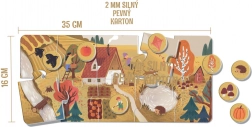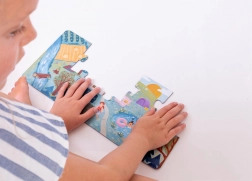 Izjemno veliki koščki sestavljanke iz 2 mm FSC kartona se dobro držijo, enostavno zlagajo in zdržijo vsakodnevno igro brez plastike.