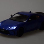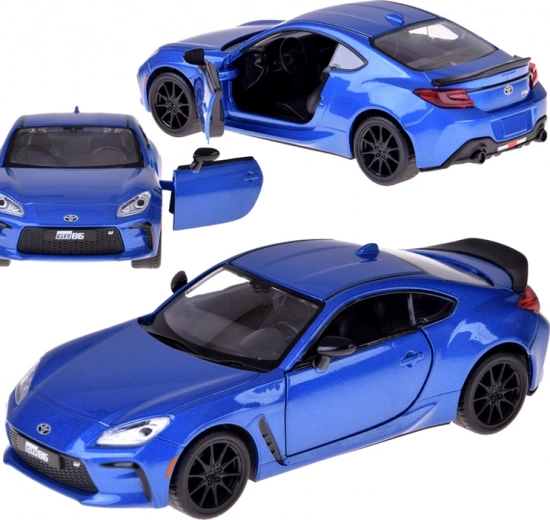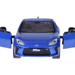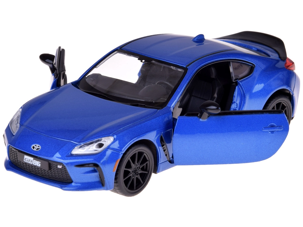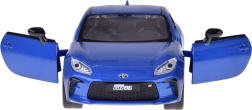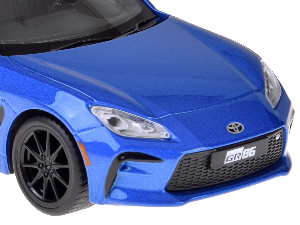 Podrobno izdelan model TOYOTA GR86 v privlačni modri kovinski barvi navduši s kakovostno izdelavo in realističnimi proporcijami. Kovinska karoserija s plastičnim podvozjem in gumijasta kolesa zagotavljajo gladko in tiho gibanje, medtem ko odpirajoča se vrata aktivirajo luči ter zvoke motorja in hupo.
