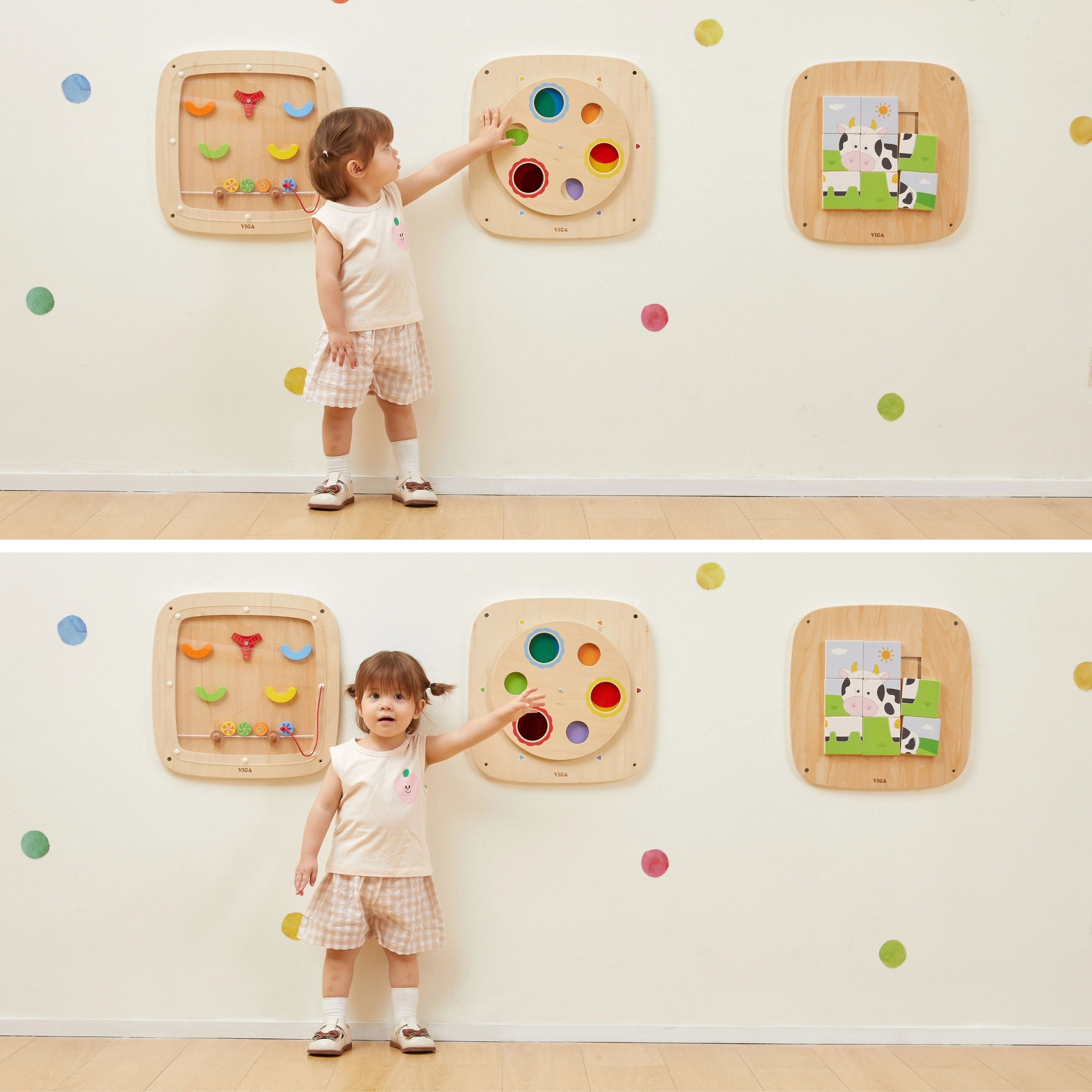 Zaradi stenske namestitve je plošča idealna za manjše sobe, vrtce in igralne kotičke – ne zaseda talnega prostora in je vedno pripravljena na varno igro. Vzdržljivi, kakovostni materiali in gladka obdelava zagotavljajo dolgo življenjsko dobo tudi pri vsakodnevni uporabi.