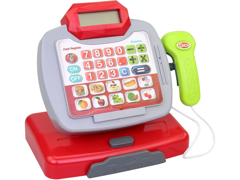 Ta realistična otroška blagajna je odličen dodatek za igro trgovine. Zahvaljujoč svetlobnim in zvočnim učinkom ter delujočemu čitalniku dviguje otroško domišljijo na višjo raven. Vgrajeni digitalni kalkulator olajša seštevanje in pregled nad nakupi.