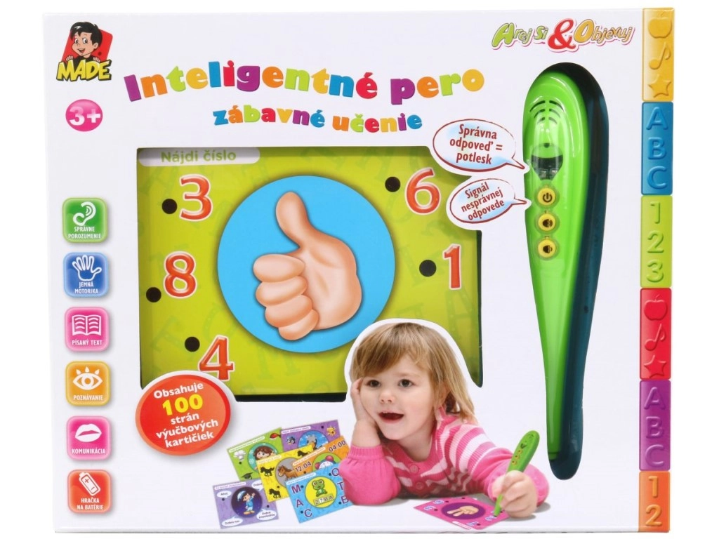Pametno pero s karticami je idealen pripomoček za igrivo učenje. Otroci vadijo logiko, pozornost in znanje, takojšnja svetlobna povratna informacija pa jih motivira k nadaljnjemu raziskovanju. Zaradi slovenskih vprašanj in odgovorov je set primeren tudi za razvoj razumevanja tujega jezika pri čeških otrocih.