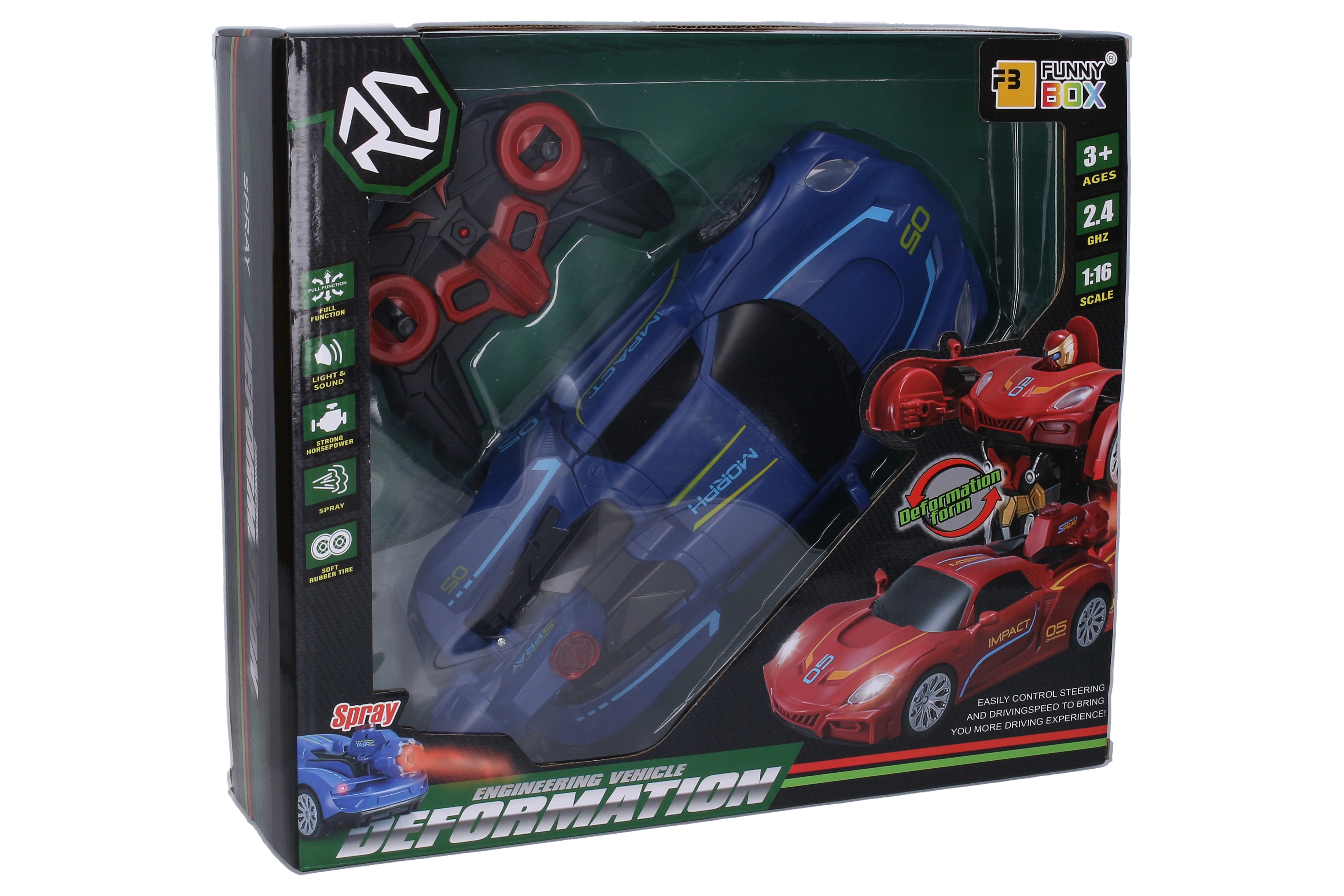 Ta kadilski RC avtorobot združuje hitro vozilo in akcijskega robota v enem. Z enim pritiskom gumba aktivirate transformacijo, medtem ko kadilski efekt ter izraziti svetlobni in zvočni učinki ustvarijo impresiven spektakel, ki navduši otroke in odrasle.